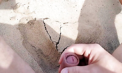 wilder kerl wichst am strand, während wilde dame ihn beobachtet