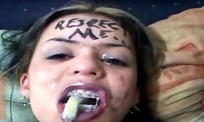 fake sperma bukakke für bi-atch in strümpfen