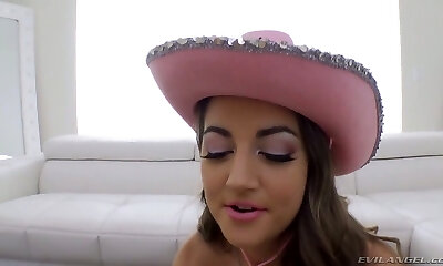 wench in rosa hut und unterwäsche lily adams nimmt ein große schlauch in tief facehole und nass gash