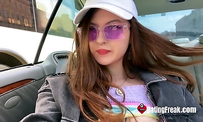 kelsi monroe bekommt ihren rasierten biber tief in einen van geschraubt