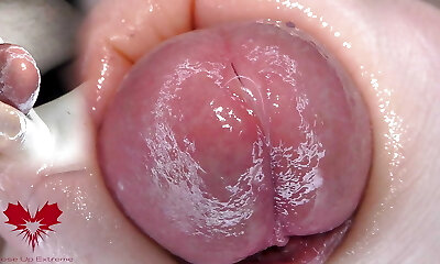 Urethral play with a bladder implement and a dilator with vibration. Close up sounding.