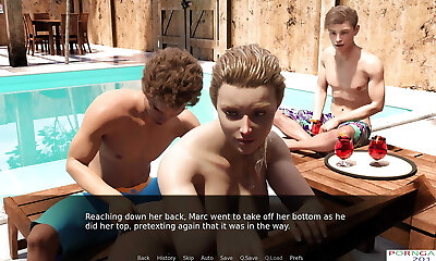 Poolside threesome for two cute girls and one successful big hard-on guy