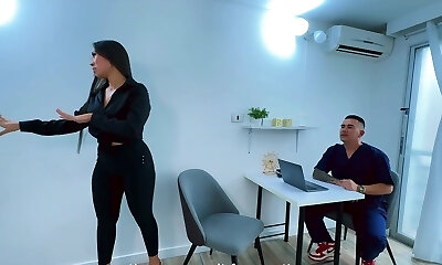 похотливый пышногрудый доктор пользуется стояком своей пациентки прямо рядом со своей девушкой