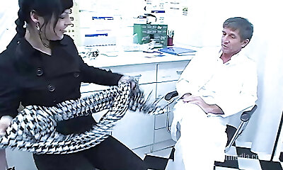 красотка с небритыми половыми губами посещает своего врача и получает палец щекотали