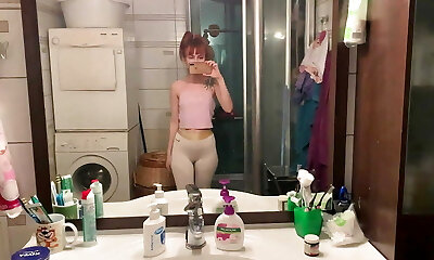 Perfect butt amateur teen squirting in her yoga pants and she has some shaking