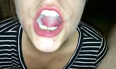 Blow-job Sloppy Cum in Mouth - Great Blowjob Close-up from Married Slut Mature MILF Housewife