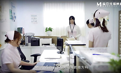 MD0180 - Creepy Doctor Convinces 2 Young Japanese Medicals Intern to Fuck to Get Ahead - Threesome Sex