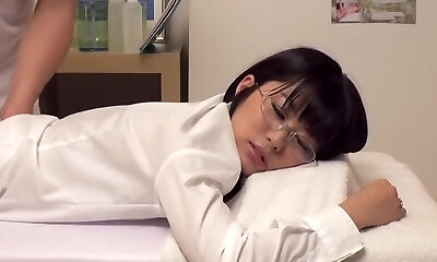 Hard-core fuck with Jap babe in voyeur massage video