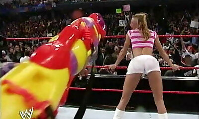 WWE - Stacy Keibler in milky shorts sprayed by super soaker