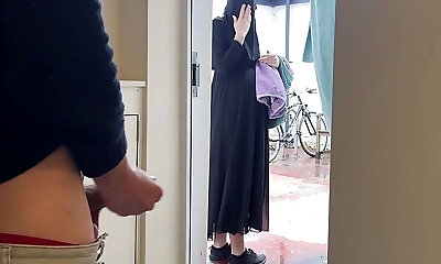 SCARED BUT CURIOUS! Muslim knocked up neighbour in niqab caught me jerking off and asked me to let her rub my uncut weenie