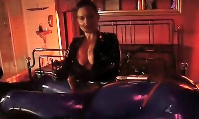 Fellow in latex suit gets fucked by a filthy shemale Nyobi