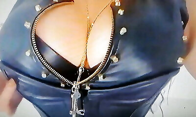 German MILF got her latex leggings covered with new spunk and went for a sperm walk