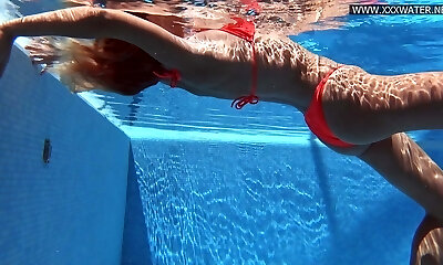 Absolutely astonishing blonde sex industry star Mary Kalisy swimming