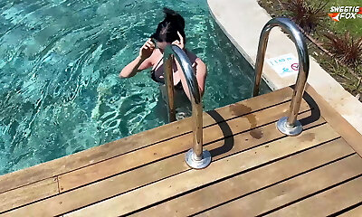 Do you know her? Teen sucks strangers dinky in pool on holiday!