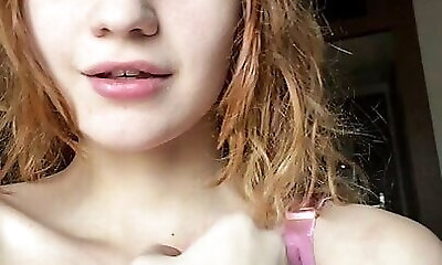19 year old huge-boobed webcam girl with innocent face touches her big natural ti